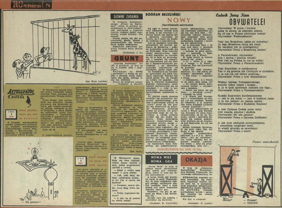 Archiwum / Rozmaitości nr 586 (27/1956) 22755/123969 Podziel się Tytuł Rozmaitości Rubryka Rozmaitości Artykuł z numeru 586 (27/1956) Data wydania 1 lipca 1956