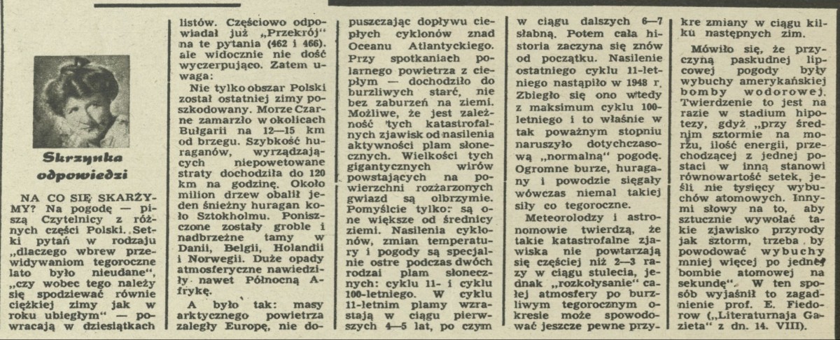 Archiwum / Skrzynka odpowiedzi nr 491 (36/1954) 18296/123969 Podziel się Tytuł Skrzynka odpowiedzi Rubryka Skrzynka odpowiedzi Artykuł z numeru 491 (36/1954) Data wydania 5 września 1954