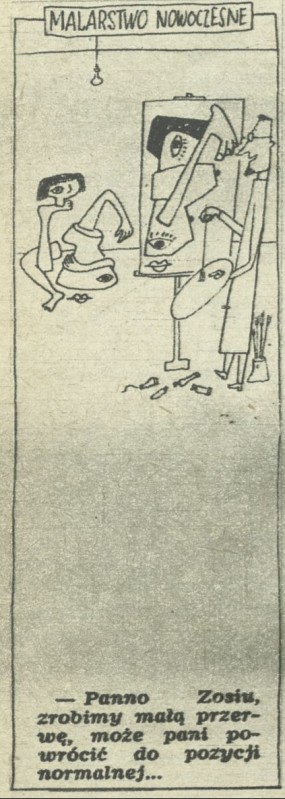 Archiwum / Historyjki obrazkowe nr 601 (42/1956) 25/139 Podziel się Tytuł Malarstwo nowoczesne Autor Marian Eile Kategoria Historyjki obrazkowe Artykuł z numeru 601 (42/1956) Data wydania 14 października 1956 Tagi żart rysunkowy kubizm malarz obraz abstrakcja modelka