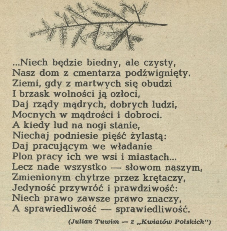 Archiwum / Przekrój tygodnia nr specjalny 51/1956 23809/123969 Podziel się Tytuł Kwiaty polskie Autor Julian Tuwim Rubryka Przekrój tygodnia Artykuł z numeru nr specjalny 51/1956 Data wydania 23 grudnia 1956 Tagi wiersz