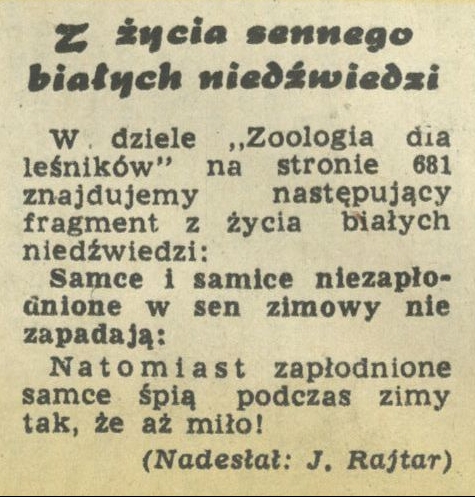 Archiwum / Rozmaitości [old] nr 612 (01/1957) 2/2 Podziel się Tytuł Z życia sennego białych niedźwiedzi Rubryka Rozmaitości [old] Artykuł z numeru 612 (1/1957) Data wydania 1 stycznia 1957