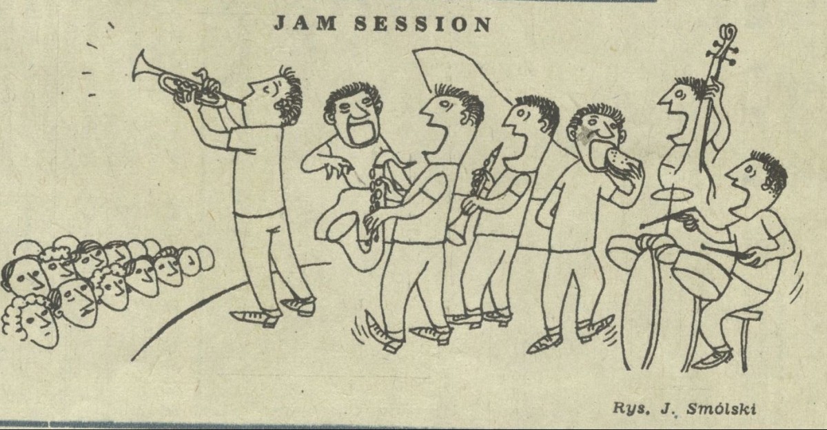 Archiwum / Rozmaitości [old] nr 614 (03/1957) 31/34 Podziel się Tytuł Jam session Autor Jan Smólski Rubryka Rozmaitości [old] Artykuł z numeru 614 (3/1957) Data wydania 13 stycznia 1957 Tagi żart rysunkowy muzyka orkiestra jazz kanapka