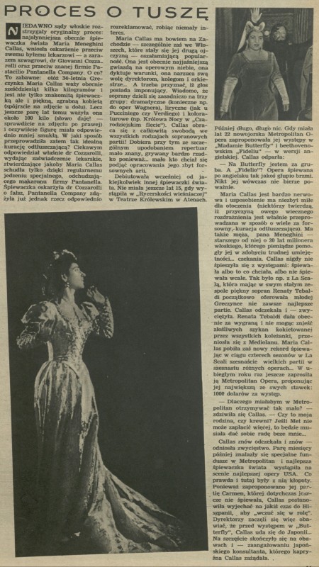 Archiwum / Naokoło świata nr 617 (06/1957) 23/139 Podziel się Tytuł Proces o tuszę Rubryka Naokoło świata Artykuł z numeru 617 (6/1957) Data wydania 3 lutego 1957 Tagi opera śpiew śpiewaczka Maria Callas waga sąd Pantanella makaron