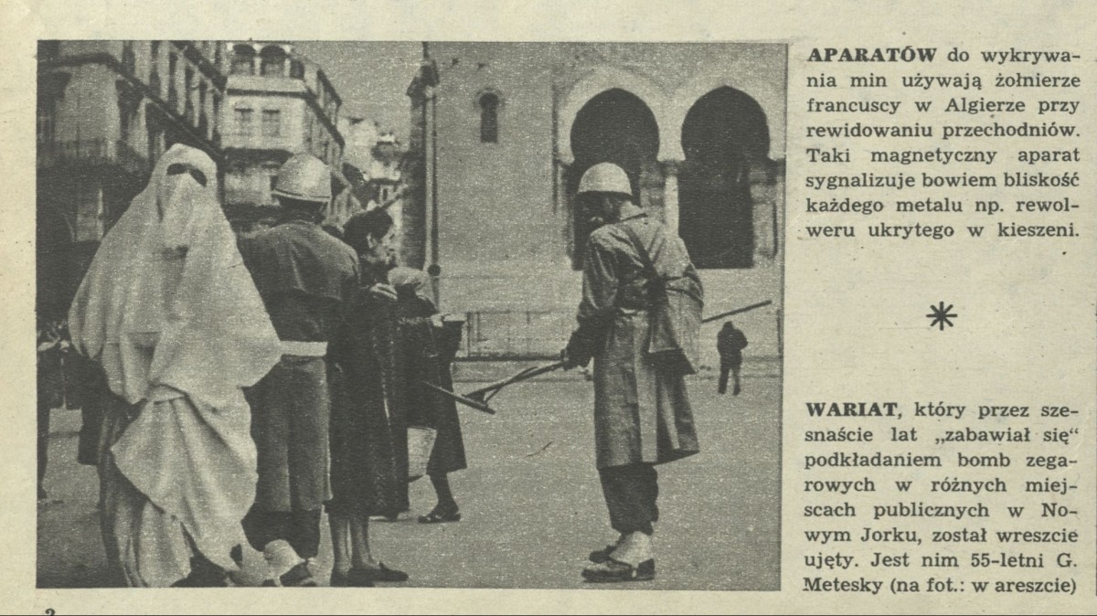 Archiwum / Przekrój tygodnia nr 618 (07/1957) 24203/123969 Podziel się Tytuł Aparaty do wykrywania min Autor CAF Rubryka Przekrój tygodnia Artykuł z numeru 618 (7/1957) Data wydania 10 lutego 1957 Tagi Algier