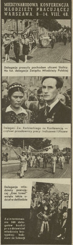 Archiwum / Przekrój tygodnia nr 175 (33/1948) 83/137 Podziel się Tytuł Międzynarodowa Konferencja Młodzieży Pracującej Warszawa. 8-14. VIII. 48 Rubryka Przekrój tygodnia Artykuł z numeru 175 (33/1948) Data wydania 15 sierpnia 1948 Tagi ZSRR młodzież