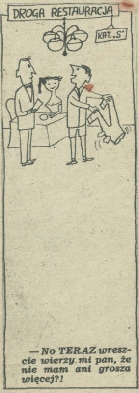 Archiwum / Historyjki obrazkowe nr 634 (23/1957) 25047/123969 Podziel się Tytuł Droga restauracja Autor Marian Eile Kategoria Historyjki obrazkowe Artykuł z numeru 634 (23/1957) Data wydania 2 czerwca 1957 Tagi żart rysunkowy pieniądze