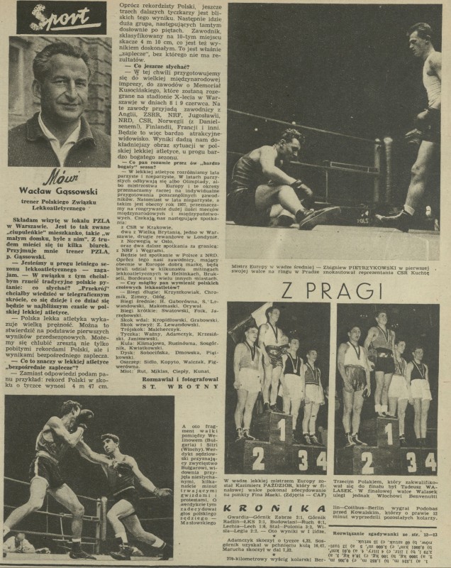 Archiwum / Sport nr 635 (24/1957) 25110/123969 Podziel się Tytuł Z Pragi Rubryka Sport Artykuł z numeru 635 (24/1957) Data wydania 9 czerwca 1957 Tagi boks Pietrzykowski Paździor Walasek