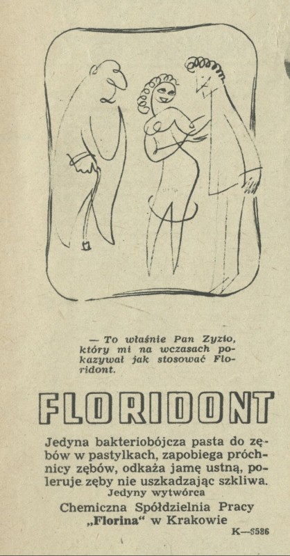 Archiwum / Reklamy nr specjalny 51/1957 75/3043 Podziel się Tytuł Floridont Rubryka Reklamy Artykuł z numeru nr specjalny 51/1957 Data wydania 15 grudnia 1957 Tagi "Floridont" fluor pasta do zębów