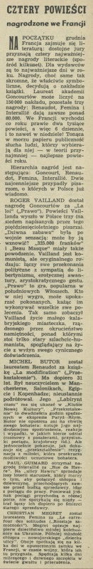 Archiwum / Książki nr 666 (02/1958) 09/312 Podziel się Tytuł Cztery powieści nagrodzone we Francji Rubryka Książki Artykuł z numeru 666 (2/1958) Data wydania 12 stycznia 1958