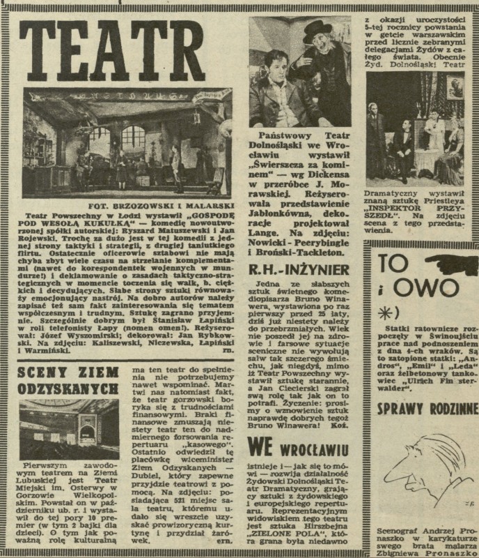 Archiwum / Teatr nr 162 (20/1948) 126/1291 Podziel się Tytuł Rubryka Teatr Artykuł z numeru 162 (20/1948) Data wydania 16 maja 1948 Tagi Świerszczyk za kominem "Zeilone pola"