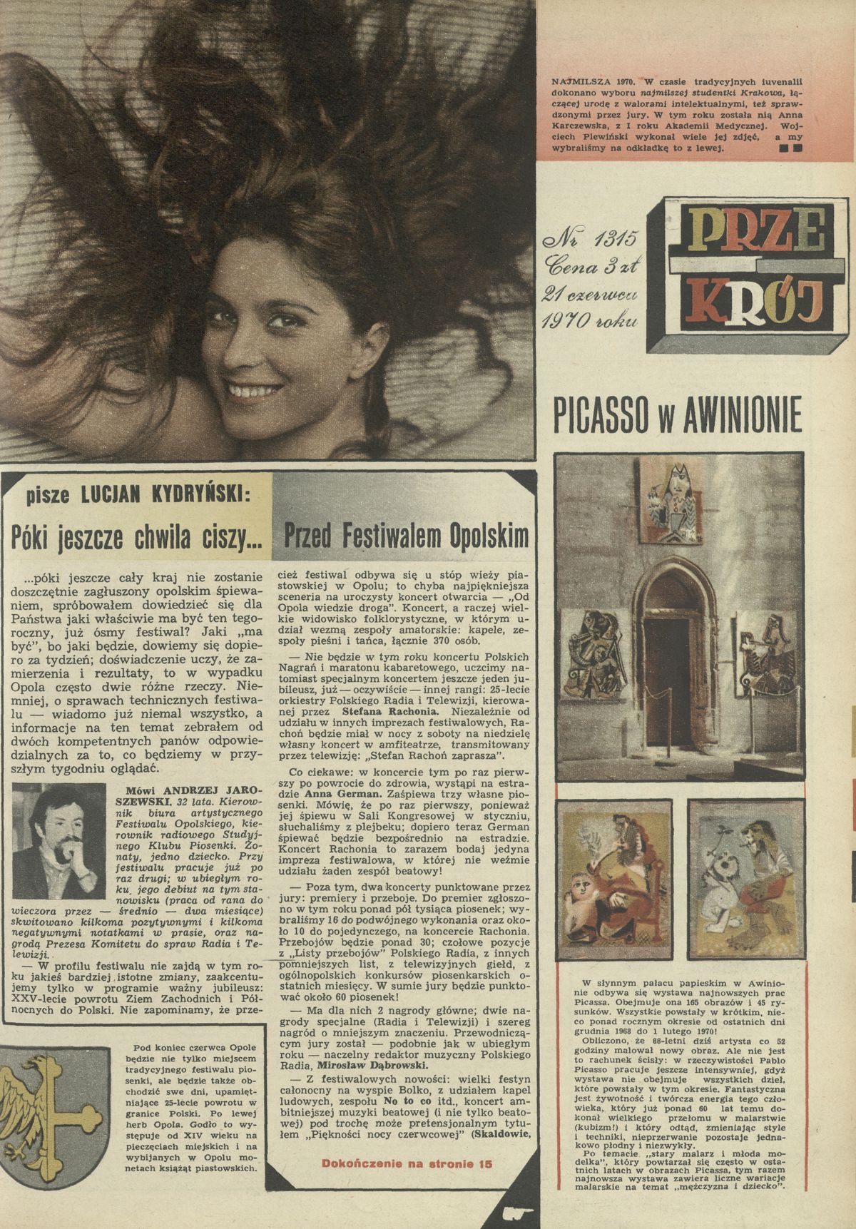 Archiwum / Okładki Przekroju nr 1315 (25/1970) 28/51 Podziel się Tytuł Okładka Autor Wojciech Plewiński Rubryka Okładki Przekroju Artykuł z numeru 1315 (25/1970) Data wydania 21 czerwca 1970 Tagi najmilsza