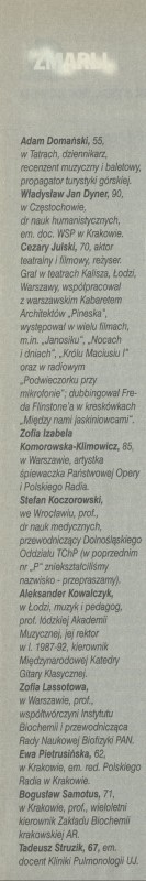 Archiwum / Przekrój radzi nr 2724 (36/1997) 116716/123969 Podziel się Tytuł Zmarli Rubryka Przekrój radzi Artykuł z numeru 2724 (36/1997) Data wydania 7 września 1997