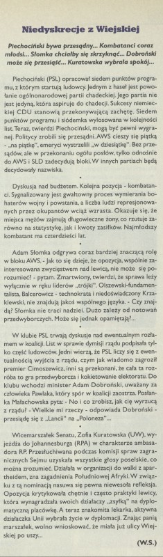 Archiwum / Relacja nr 2724 (36/1997) 02/17 Podziel się Tytuł Niedyskrecje z Wiejskiej Autor W.S. Kategoria Relacja Artykuł z numeru 2724 (36/1997) Data wydania 7 września 1997 Tagi sejm politycy polityka Piechociński Słomka PSL Kuratowska