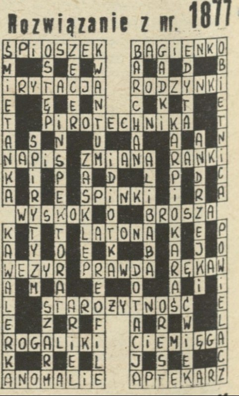 Archiwum / Krzyżówka z kociakiem nr 1878 (14/1981) 198/741 Podziel się Tytuł Rozwiązanie krzyżówki z nru 1877 Rubryka Krzyżówka z kociakiem Artykuł z numeru 1878 (14/1981) Data wydania 5 kwietnia 1981