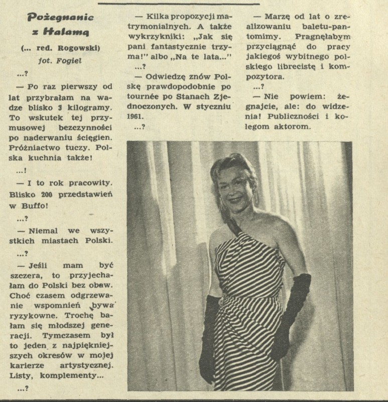 Archiwum / Wywiad nr 801 (33/1960) 02/65 Podziel się Tytuł Pożegnanie z Halamą Autor Zbigniew K. Rogowski Lucjan Fogiel Kategoria Wywiad Artykuł z numeru 801 (33/1960) Data wydania 14 sierpnia 1960
