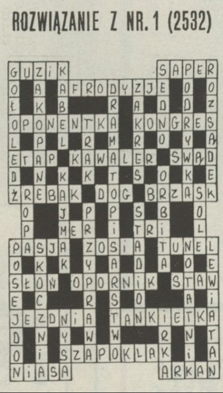 Archiwum / Krzyżówka z kociakiem nr 2533 (02/1994) 67/1449 Podziel się Tytuł Rozwiązanie krzyżówki z nru 2532 Rubryka Krzyżówka z kociakiem Artykuł z numeru 2533 (2/1994) Data wydania 9 stycznia 1994