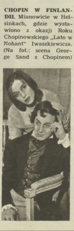 Archiwum / Fotografia nr 773 (05/1960) 3/3 Podziel się Tytuł Chopin w Finlandii Kategoria Fotografia Artykuł z numeru 773 (5/1960) Data wydania 31 stycznia 1960 Tagi "Lato w Nohant" Iwaszkiewicz