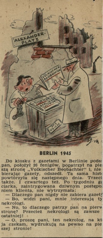 Archiwum / Rysunek nr 1 (01/1945) 19/7652 Podziel się Tytuł Berlin 1945 Autor Gwidon Miklaszewski Kategoria Rysunek Artykuł z numeru 1 (1/1945) Data wydania 15 kwietnia 1945 Tagi nekrolog