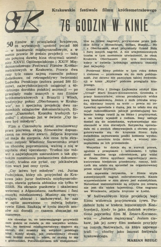 Archiwum / Film nr 2191 (23/1987) 799/1812 Podziel się Tytuł 76 godzin w kinie Autor Marian Szulc Rubryka Film Artykuł z numeru 2191 (23/1987) Data wydania 7 czerwca 1987 Tagi Festiwal Filmów Krótkometrażowych w Krakowie