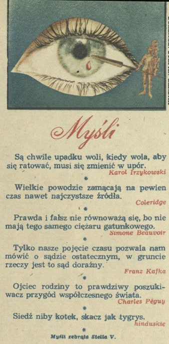Archiwum / Myśli nr 1871 (07/1981) 02/45 Podziel się Tytuł Myśli Autor Stella Varcaby Rubryka Myśli Artykuł z numeru 1871 (7/1981) Data wydania 15 lutego 1981 Tagi cytaty aforyzmy