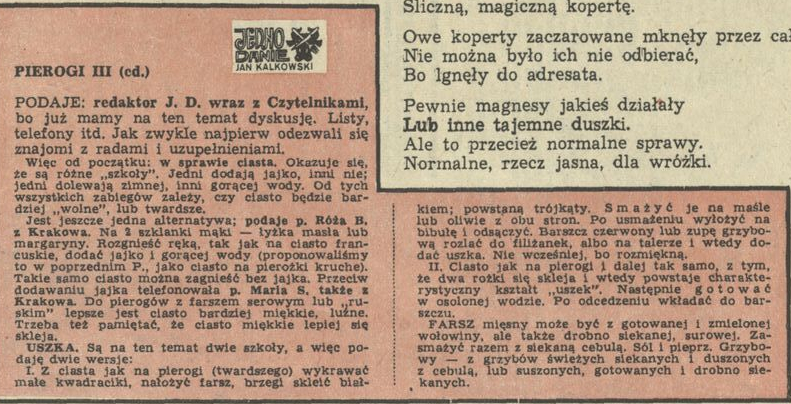 Archiwum / Jedno danie nr 1871 (07/1981) 23/275 Podziel się Tytuł Pierogi III (cd.) Autor Jan Kalkowski Rubryka Jedno danie Artykuł z numeru 1871 (7/1981) Data wydania 15 lutego 1981 Tagi kuchnia gastronomia przepis kulinarny pierogi uszka