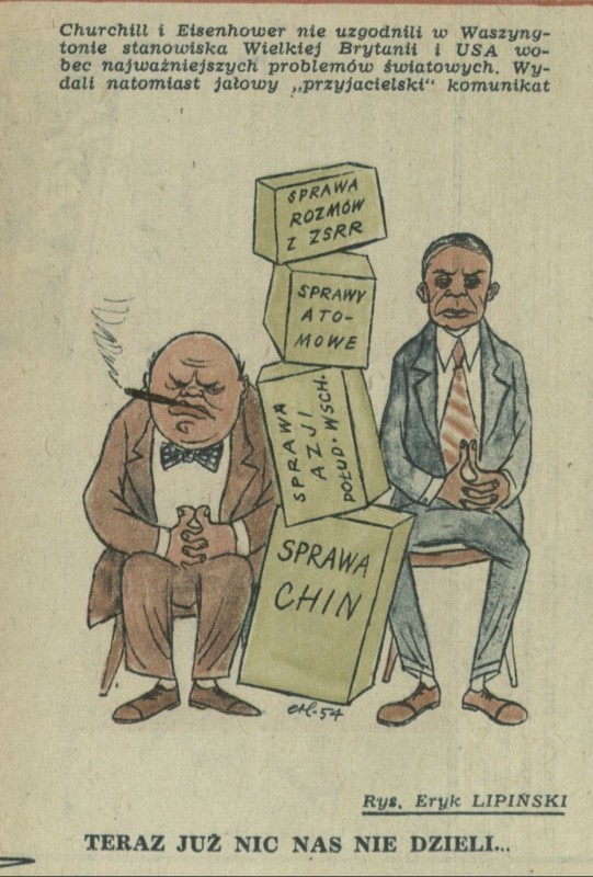Archiwum / Rysunek nr 483 (28/1954) 17905/123969 Podziel się Tytuł Teraz już nic nie dzieli... Autor Eryk Lipiński Kategoria Rysunek Artykuł z numeru 483 (28/1954) Data wydania 11 lipca 1954 Tagi propaganda karykatura satyra polityka Churchill Eisenhower