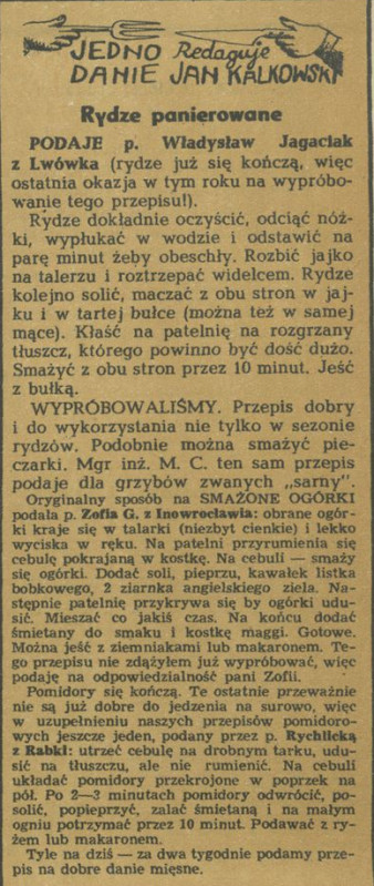Archiwum / Jedno danie nr 912 (39/1962) 137/192 Podziel się Tytuł Rydze panierowane Autor Jan Kalkowski Rubryka Jedno danie Artykuł z numeru 912 (39/1962) Data wydania 30 września 1962 Tagi kuchnia przepis kulinarny gastronomia jedno danie grzyby