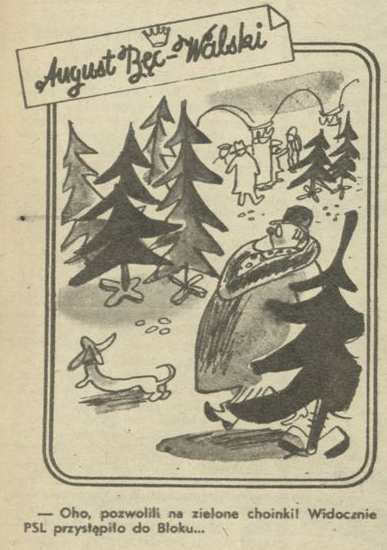 Archiwum / August Bęc-Walski nr 88 (50/1946) 87/1682 Podziel się Tytuł Pozwolili na zielone choinki Autor Karol "Charlie" Ferster Rubryka August Bęc-Walski Artykuł z numeru 88 (50/1946) Data wydania 15 grudnia 1946 Tagi żart rysunkowy polityka psl choinka