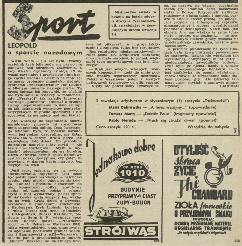 Archiwum / Sport nr 203 (09/1949) 42/193 Podziel się Tytuł Leopold o sporcie narodowym Autor Leopold Rubryka Sport Artykuł z numeru 203 (9/1949) Data wydania 27 lutego 1949