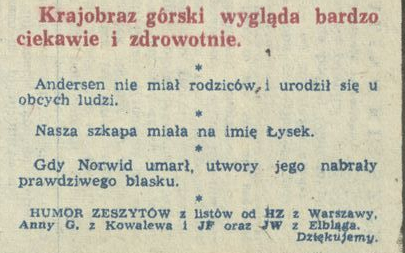 Archiwum / Humor zeszytów szkolnych nr 1981 (22/1983) 21/39 Podziel się Tytuł Humor zeszytów szkolnych Rubryka Humor zeszytów szkolnych Artykuł z numeru 1981 (22/1983) Data wydania 29 maja 1983 Tagi humor szkoła dzieci