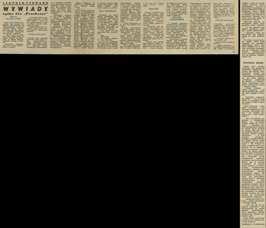 Archiwum / W kilku zdaniach nr 179 (37/1948) 5367/123969 Podziel się Tytuł Wywiady tylko dla „Przekroju” Autor Leopold Tyrmand Rubryka W kilku zdaniach Artykuł z numeru 179 (37/1948) Data wydania 12 września 1948 Tagi Maurice Bedel
