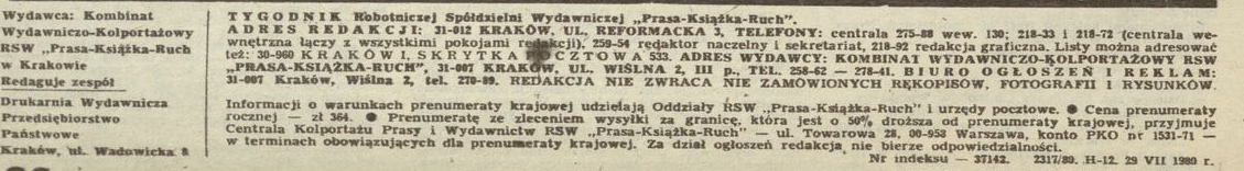 Archiwum / Różności nr 1843 (31/1980) 44/53 Podziel się Tytuł Stopka redakcyjna Kategoria Różności Artykuł z numeru 1843 (31/1980) Data wydania 3 sierpnia 1980