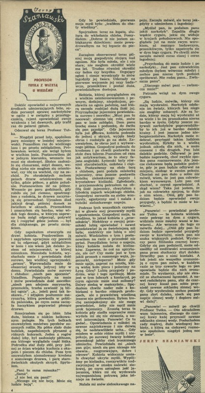 Archiwum / Opowiadanie nr 495 (40/1954) 18485/123969 Podziel się Tytuł Profesor Tutka z wizytą u wiedźmy Autor Jerzy Szaniawski Kategoria Opowiadanie Artykuł z numeru 495 (40/1954) Data wydania 3 października 1954