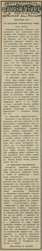 Archiwum / Demokratyczny savoir-vivre nr 113 (23/1947) 13/1625 Podziel się Tytuł Demokratyczny Savoir Vivre w odcinkach - odcinek XIV - w sprawie podawania ręki Autor Jan Kamyczek Rubryka Demokratyczny savoir-vivre Artykuł z numeru 113 (23/1947) Data wydania 8 czerwca 1947