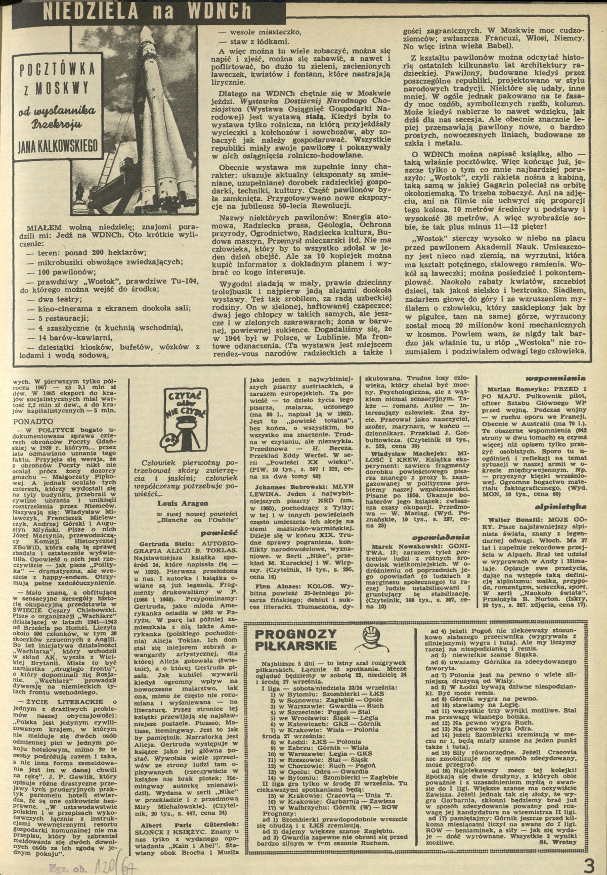 Archiwum / korespondencja własna "Przekroju" nr 1172 (39/1967) 315/438 Podziel się Tytuł Niedziela na WDNCh Autor Jan Kalkowski Rubryka korespondencja własna "Przekroju" Artykuł z numeru 1172 (39/1967) Data wydania 24 września 1967 Tagi WDNCh Moskwa