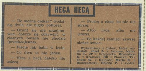 Archiwum / Heca hecą nr 1487 (40/1973) 12/46 Podziel się Tytuł Heca hecą Rubryka Heca hecą Artykuł z numeru 1487 (40/1973) Data wydania 7 października 1973 Tagi powiedzenia powiedzonka