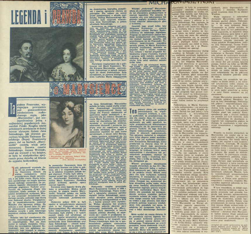 Archiwum / Kultura nr 1844 (32/1980) 08/16 Podziel się Tytuł Legenda i prawda o Marysieńce Autor Michał Komaszyński Kategoria Kultura Artykuł z numeru 1844 (32/1980) Data wydania 10 sierpnia 1980 Tagi historia Jan III Sobieski marysieńka sobieska Maria Kazimiera d'Arquien