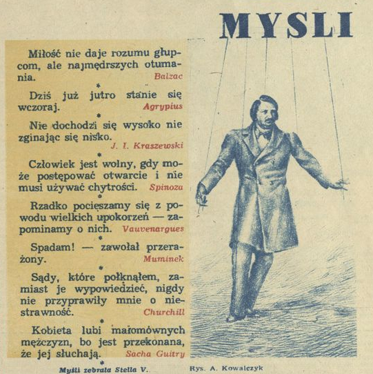 Archiwum / Myśli nr 1831 (19/1980) 06/14 Podziel się Tytuł Myśli Autor Stella Varcaby Rubryka Myśli Artykuł z numeru 1831 (19/1980) Data wydania 11 maja 1980 Tagi cytaty myśli aforyzmy