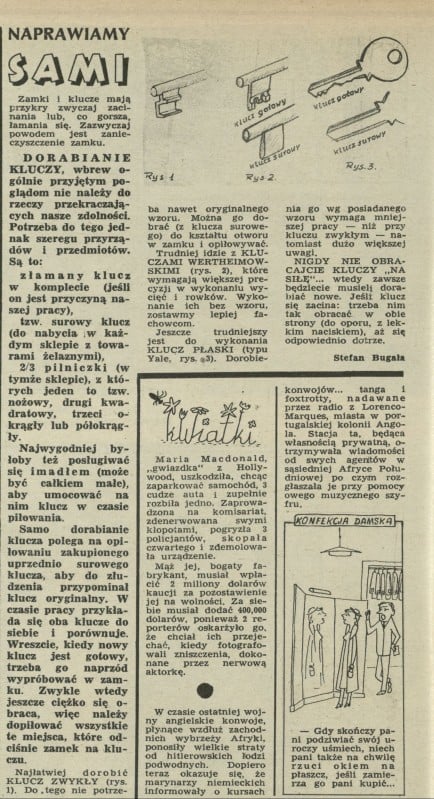 Archiwum / Różności nr 492 (37/1954) 6/9 Podziel się Tytuł Naprawiamy sami Autor Stefan Bugała Kategoria Różności Artykuł z numeru 492 (37/1954) Data wydania 12 września 1954 Tagi dorabianie kluczy klucz