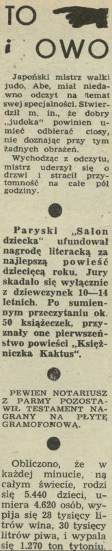 Archiwum / To i owo nr 492 (37/1954) 12/18 Podziel się Tytuł To i owo Rubryka To i owo Artykuł z numeru 492 (37/1954) Data wydania 12 września 1954 Tagi "Salon dziecka" Paryż notariusz