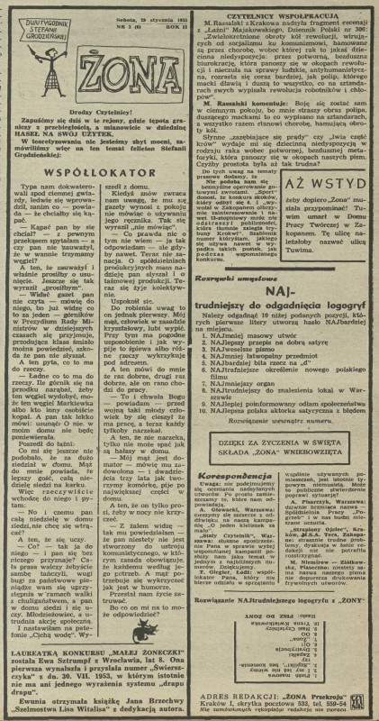 Archiwum / Dwutygodnik Stefanii Grodzieńskiej „Żona” nr 512 (05/1955) 75/1067 Podziel się Tytuł Dwutygodnik Stefanii Grodzieńskiej „Żona” Autor Stefania Grodzieńska Rubryka Dwutygodnik Stefanii Grodzieńskiej „Żona” Artykuł z numeru 512 (5/1955) Data wydania 30 stycznia 1955 Tagi małżeństwo mąż żona współlokator