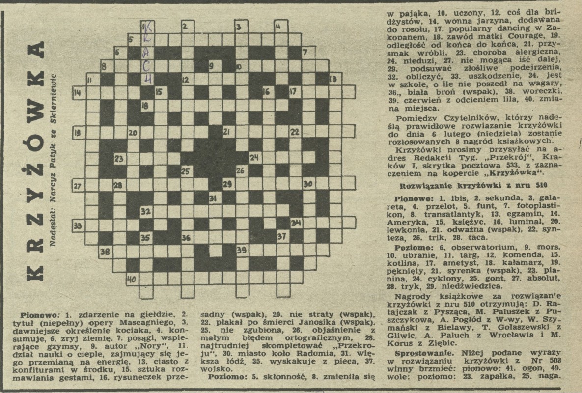 Archiwum / Krzyżówka nr 512 (05/1955) 84/288 Podziel się Tytuł Krzyżówka Rubryka Krzyżówka Artykuł z numeru 512 (5/1955) Data wydania 30 stycznia 1955