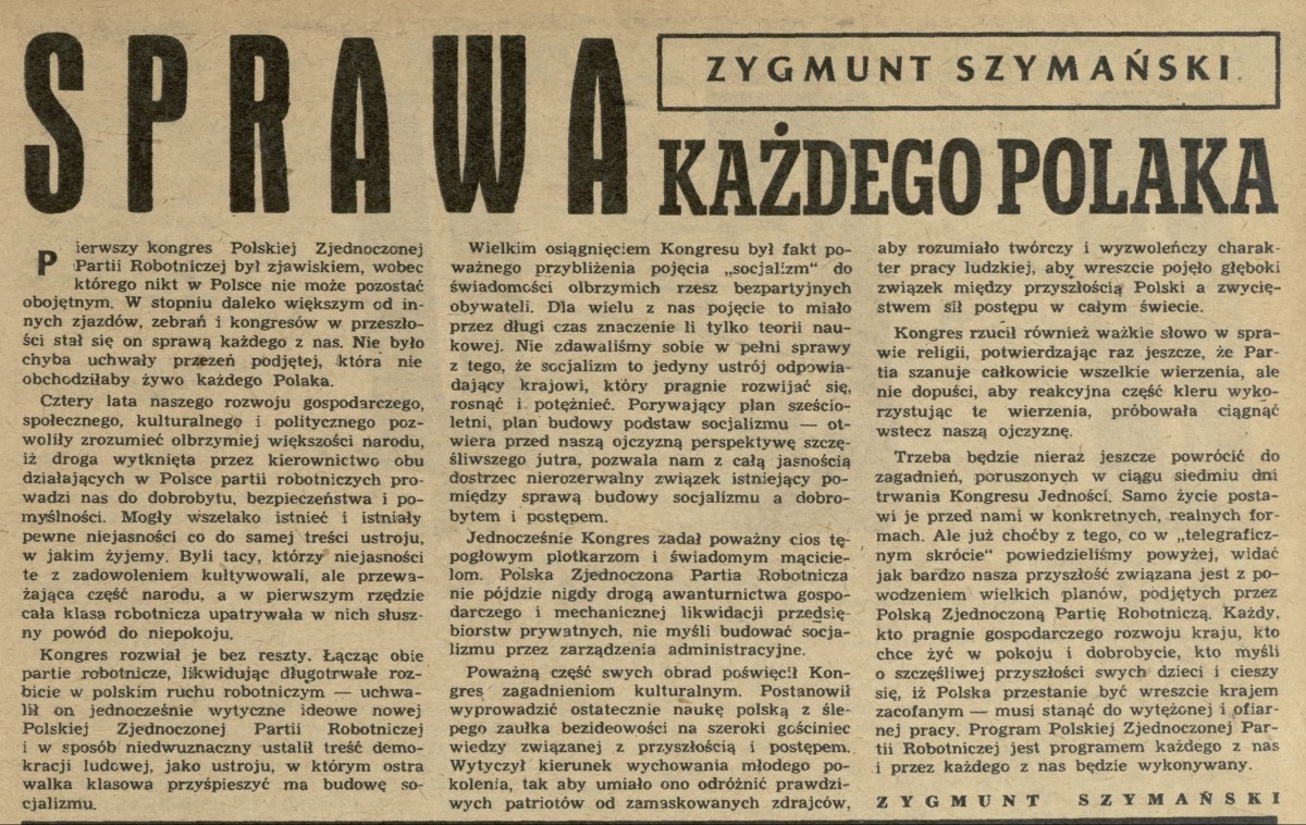 Archiwum / Opinie nr 196 (02/1949) 11/278 Podziel się Tytuł Sprawa każdego Polaka Autor Zygmunt Szymański Kategoria Opinie Artykuł z numeru 196 (2/1949) Data wydania 9 stycznia 1949 Tagi Polska Zjednoczona Partia Robotnicza Kongres Zjednoczeniowy socjalizm