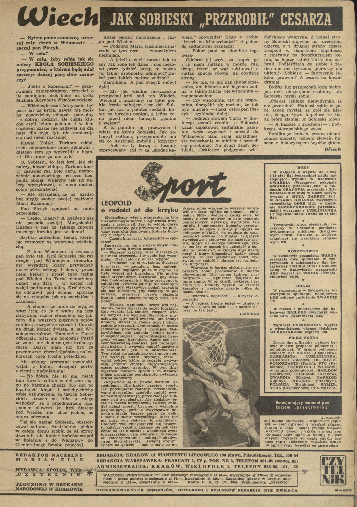 Archiwum / Opowiadanie nr 197 (03/1949) 6053/123969 Podziel się Tytuł Jak Sobieski „przerobił” cesarza Autor Wiech Kategoria Opowiadanie Artykuł z numeru 197 (3/1949) Data wydania 16 stycznia 1949