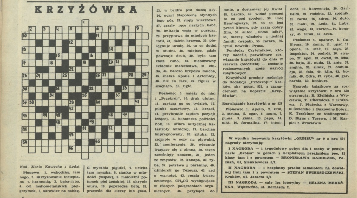 Archiwum / Krzyżówka nr 530 (23/1955) 20095/123969 Podziel się Tytuł Krzyżówka Rubryka Krzyżówka Artykuł z numeru 530 (23/1955) Data wydania 5 czerwca 1955