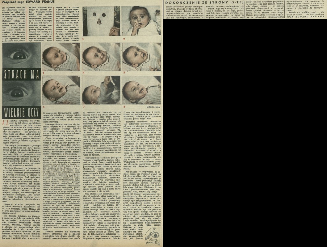 Archiwum / Artykuł nr 530 (23/1955) 2/3 Podziel się Tytuł Strach ma wielkie oczy Autor Edward Franus Kategoria Artykuł Artykuł z numeru 530 (23/1955) Data wydania 5 czerwca 1955 Tagi strach dziecko dzieci