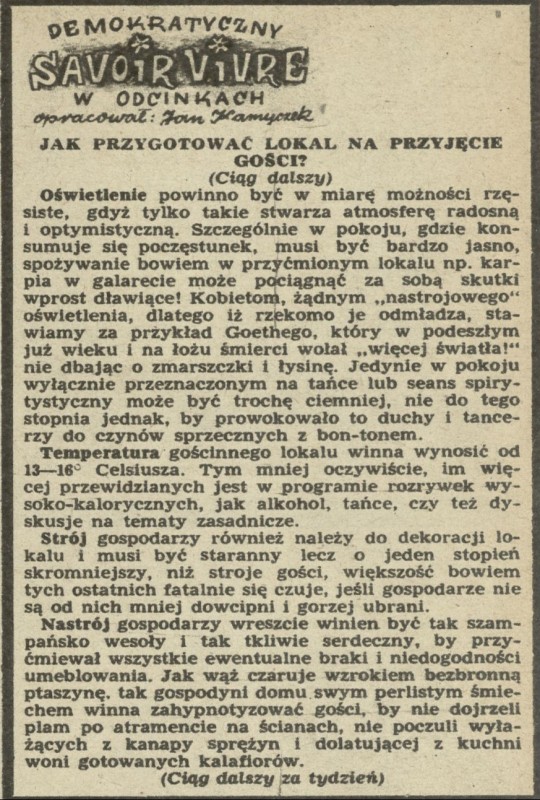 Archiwum / Demokratyczny savoir-vivre nr 200 (06/1949) 6118/123969 Podziel się Tytuł Demokratyczny savoir-vivre Autor Jan Kamyczek Rubryka Demokratyczny savoir-vivre Artykuł z numeru 200 (6/1949) Data wydania 6 lutego 1949