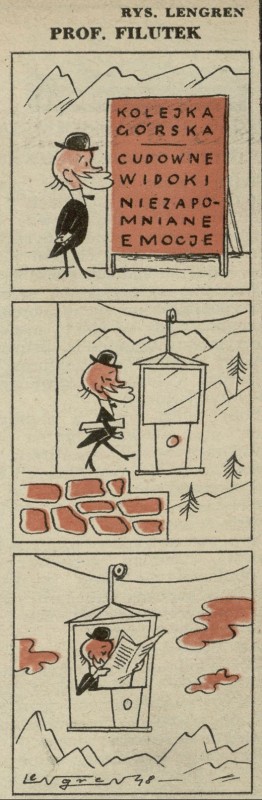 Archiwum / Profesor Filutek nr 204 (10/1949) 50/90 Podziel się Tytuł Prof. Filutek Autor Zbigniew Lengren Rubryka Profesor Filutek Artykuł z numeru 204 (10/1949) Data wydania 6 marca 1949 Tagi żart rysunkowy kolejka górska gazeta