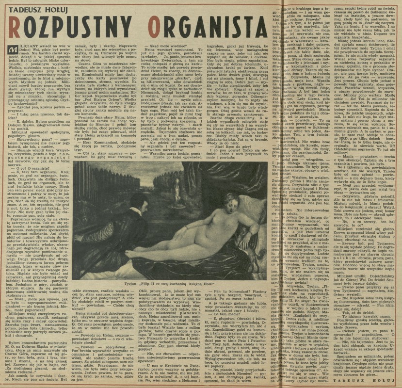 Archiwum / Reportaż nr 547 (40/1955) 20847/123969 Podziel się Tytuł Rozpustny organista Autor Tadeusz Hołuj Kategoria Reportaż Artykuł z numeru 547 (40/1955) Data wydania 2 października 1955 Tagi sztuka Tycjan malarstwo