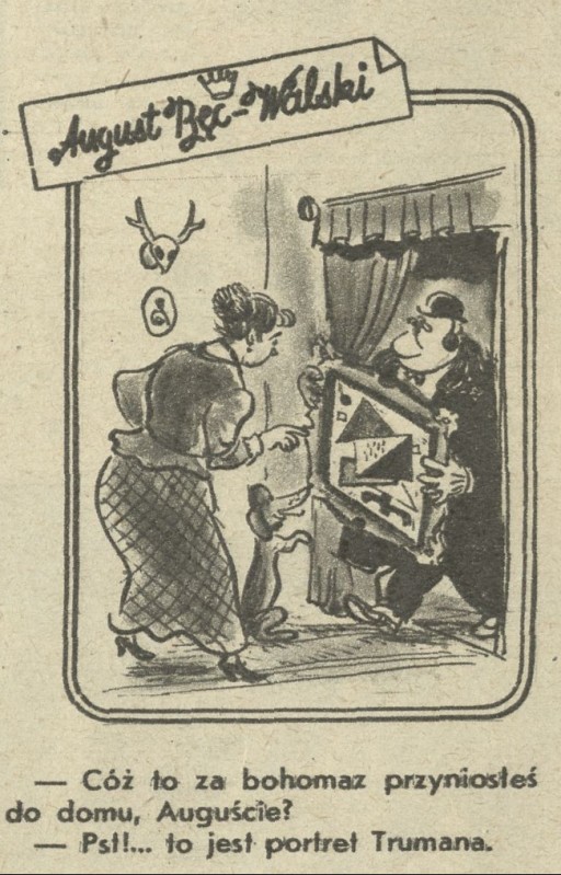 Archiwum / August Bęc-Walski nr 202 (08/1949) 149/410 Podziel się Tytuł [-Cóż to za bohomaz przyniosłeś do domu, Auguście?] Autor Karol "Charlie" Ferster Rubryka August Bęc-Walski Artykuł z numeru 202 (8/1949) Data wydania 28 lutego 1949